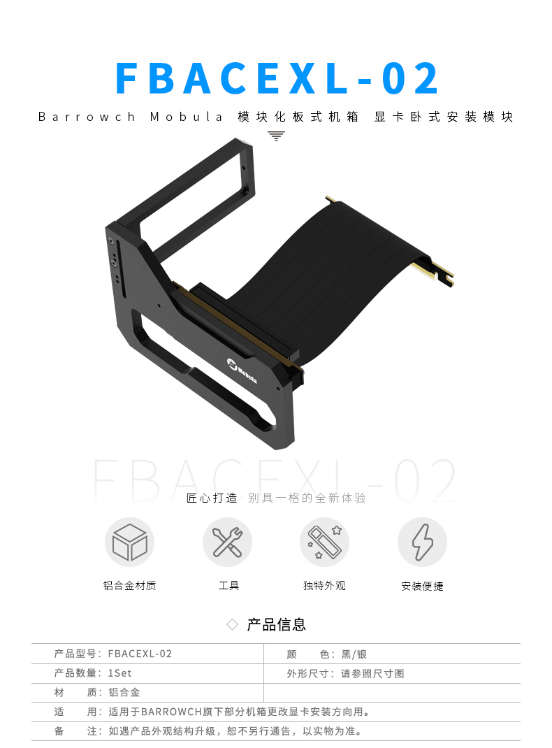 Barrowch Mobula 模块化板式机箱 显卡卧式安装模块 加长版