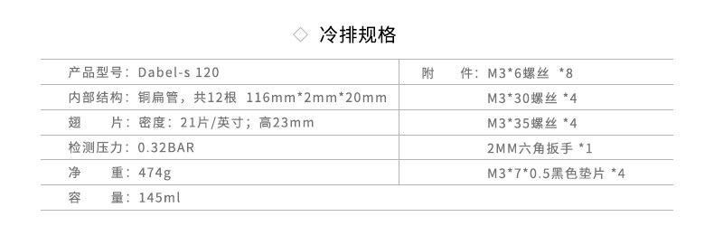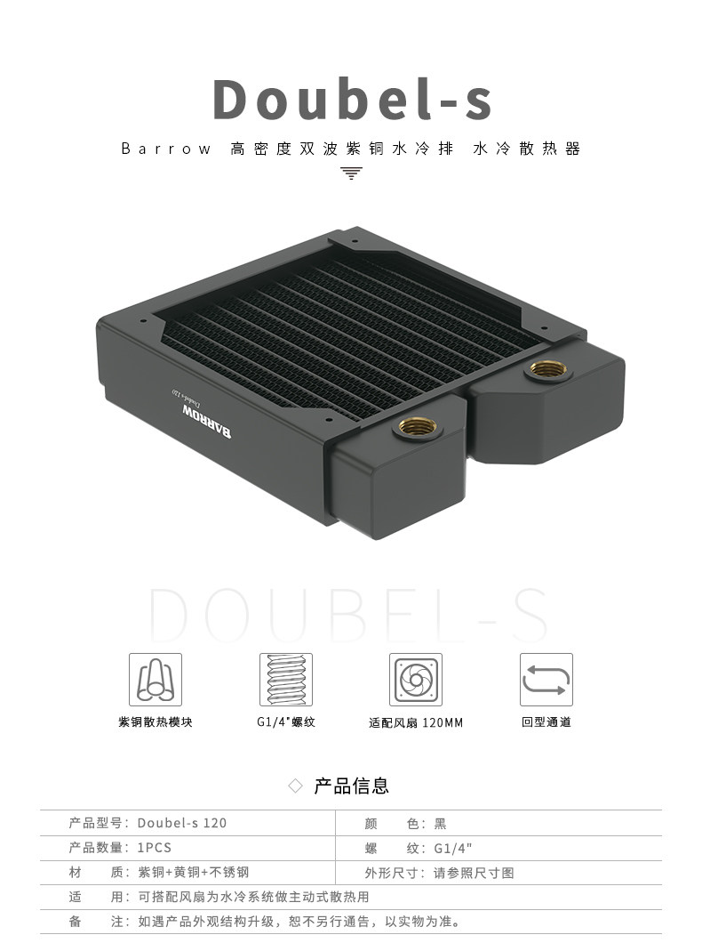 Barrow Doubel-s 120 高密度双波紫铜水冷排 散热器 34MM