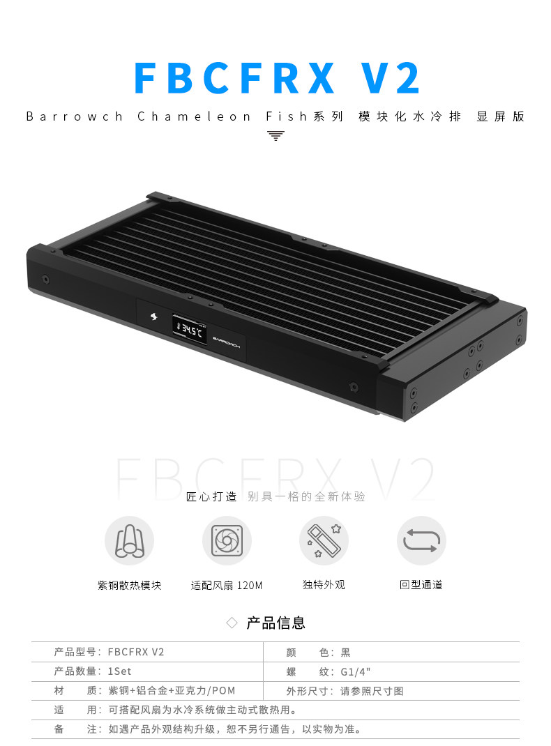 Barrowch Chameleon Fish系列 显示屏水冷排POM版 FBCFRX-240P V2
