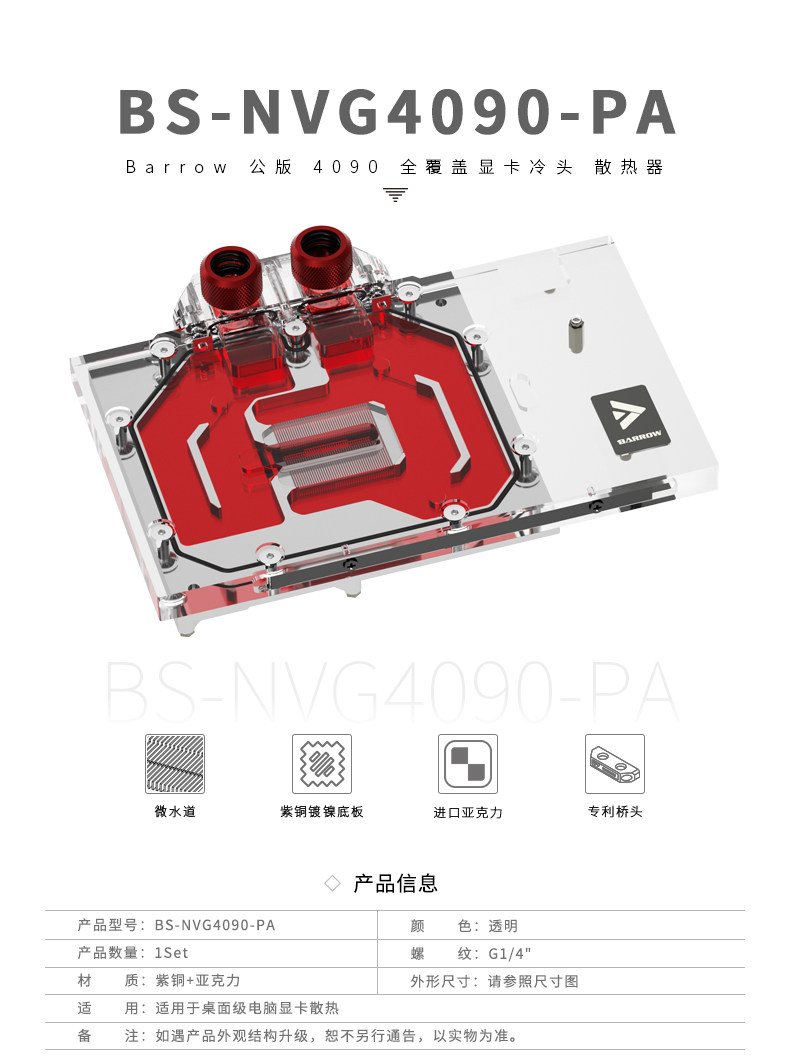 Barrow 公版 4090 全覆盖显卡水冷头 散热器 BS-NVG4090-PA