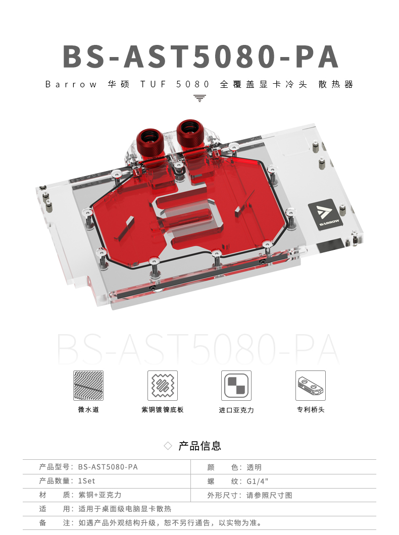 华硕TUF 5080 全覆盖显卡冷头 BS-AST5080-PA