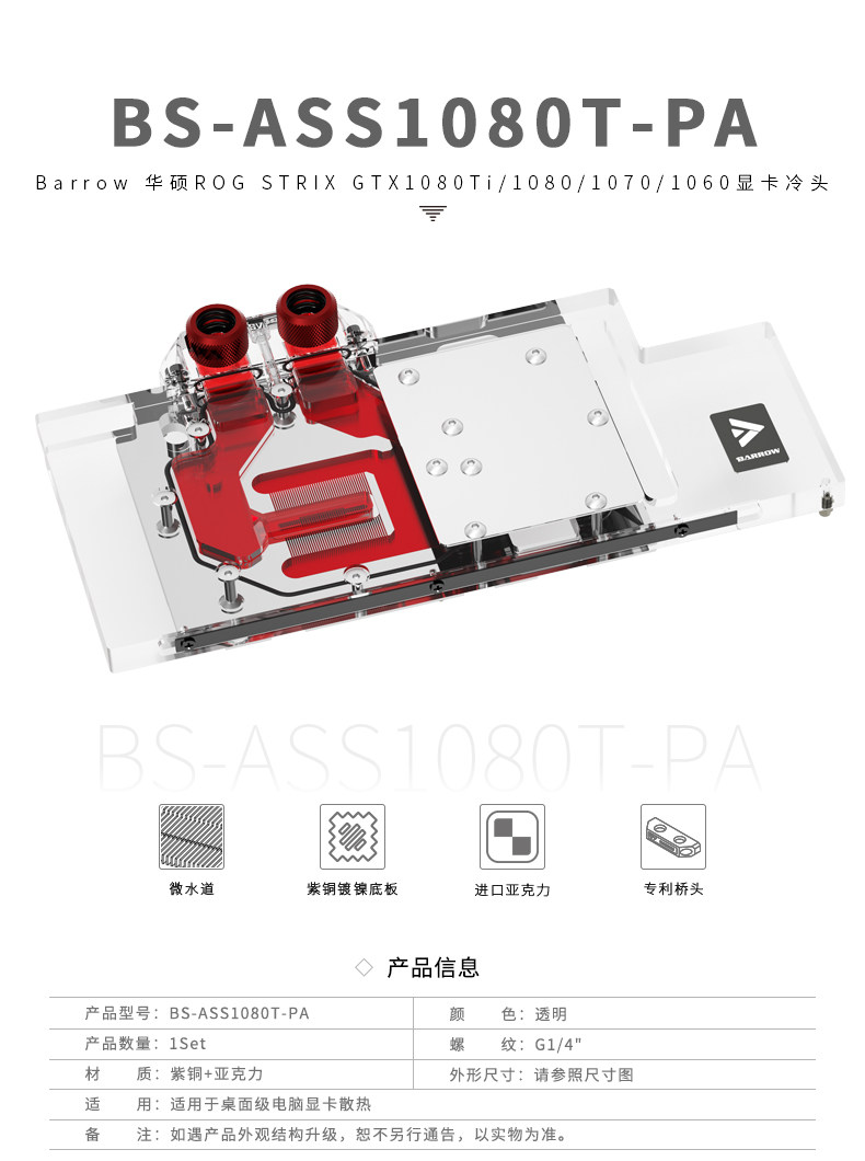 BARROW华硕ROG STRIX GTX1080Ti/70Ti/80显卡冷头BS-ASS1080T-PA