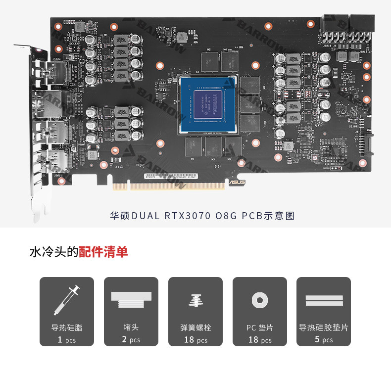 Barrow 华硕DUAL 3070全覆盖显卡冷头 散热器 极光 BS-ASD3070-PA