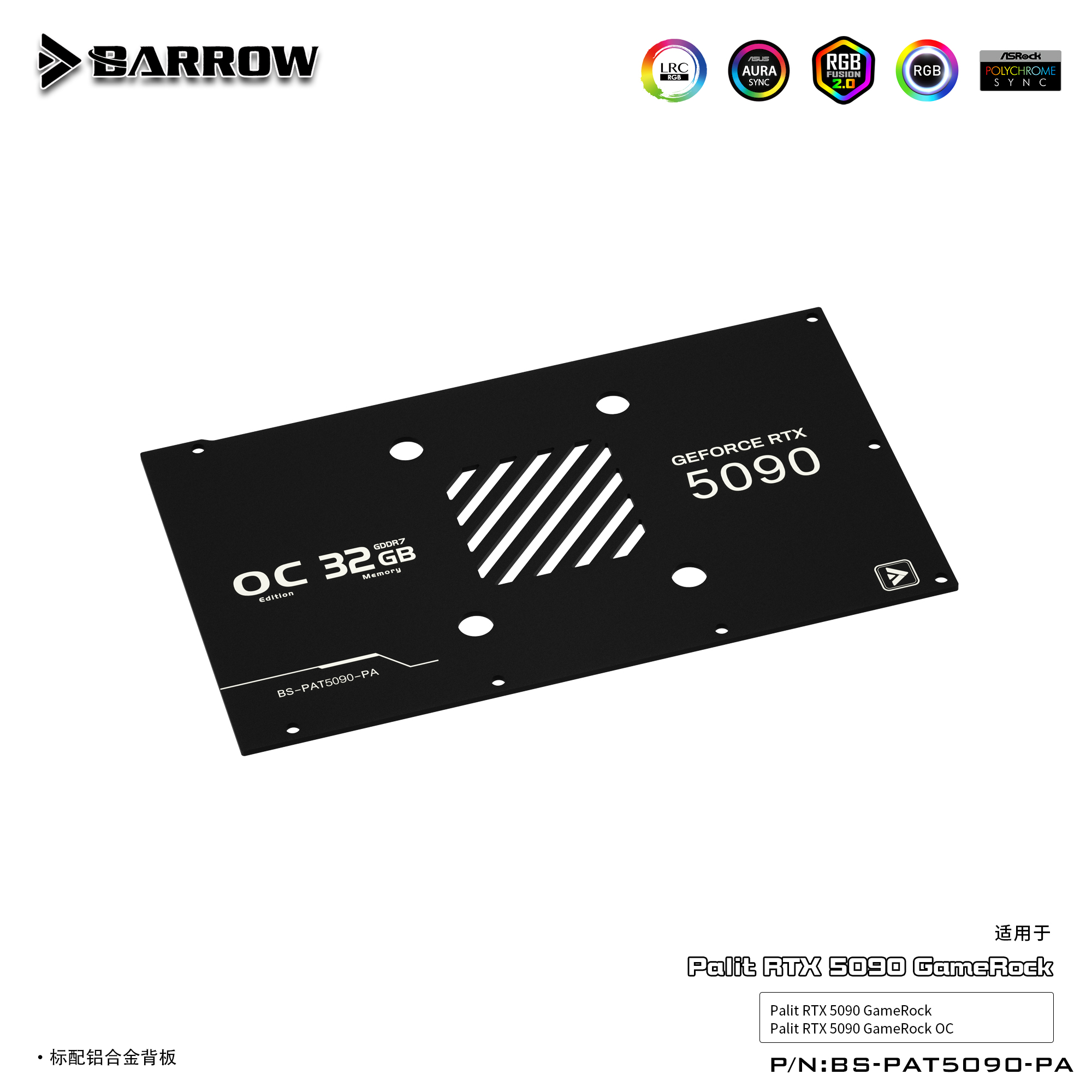 Barrow 同德GameRock 5090全覆盖显卡水冷头散热器 BS-PAT5090-PA