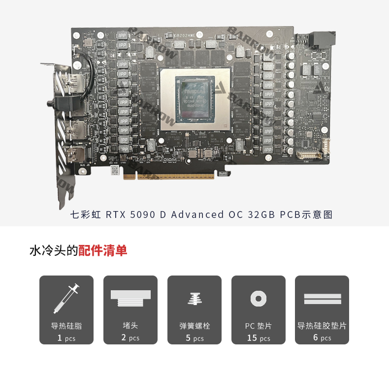 Barrow七彩虹Advanced5090全覆盖显卡水冷头散热器BS-COIA5090-PA