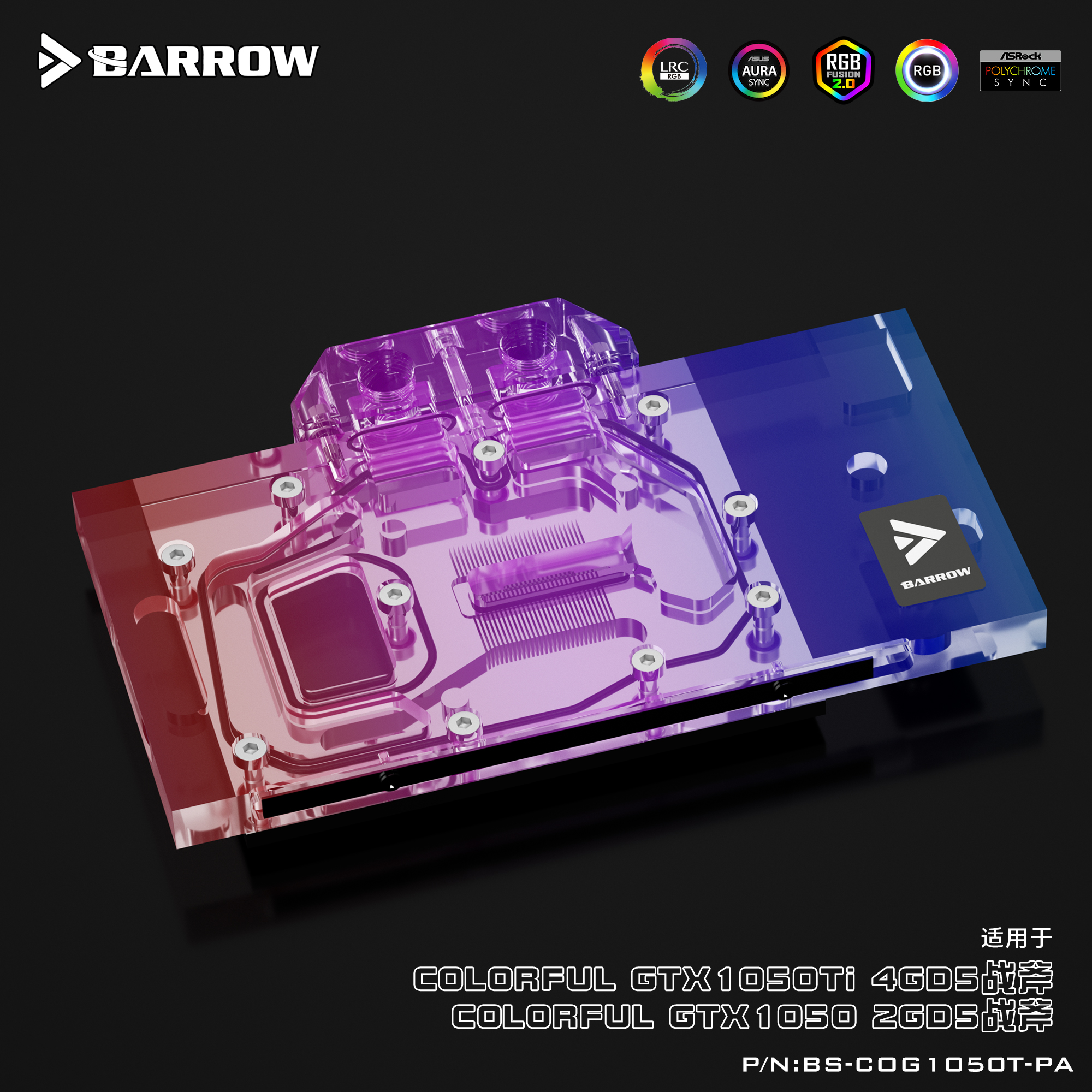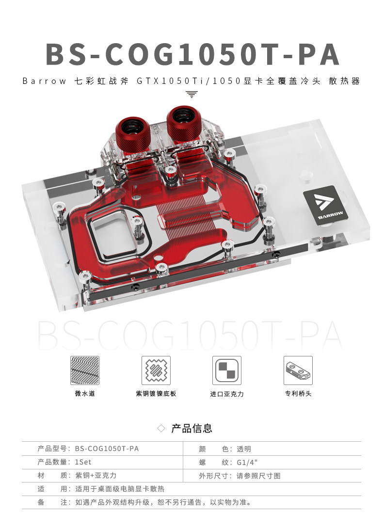 BARROW七彩虹战斧 GTX1050Ti/1050显卡全覆盖冷头 BS-COG1050T-PA