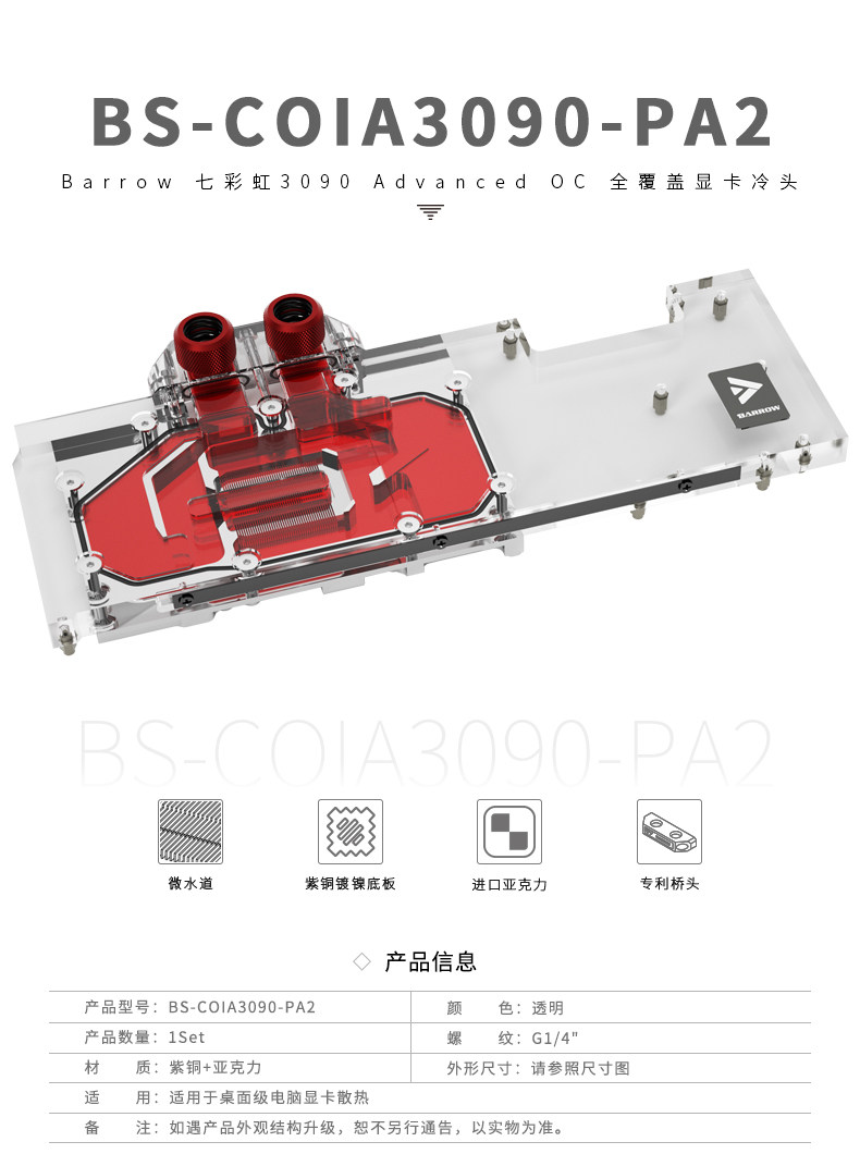 Barrow 七彩虹3090 Advanced OC 全覆盖显卡冷头 BS-COIA3090-PA2