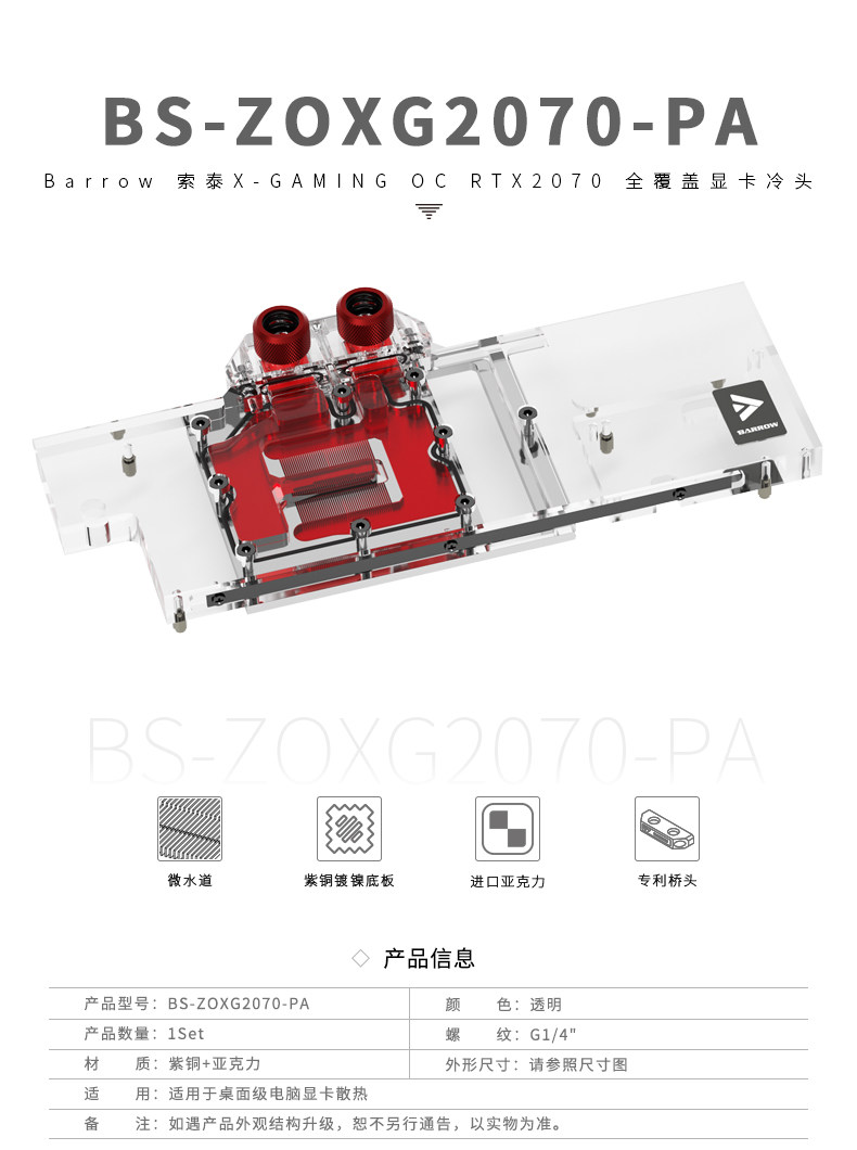 Barrow 索泰X-GAMING RTX2070全覆盖显卡冷头 极光 BS-ZOXG2070-PA