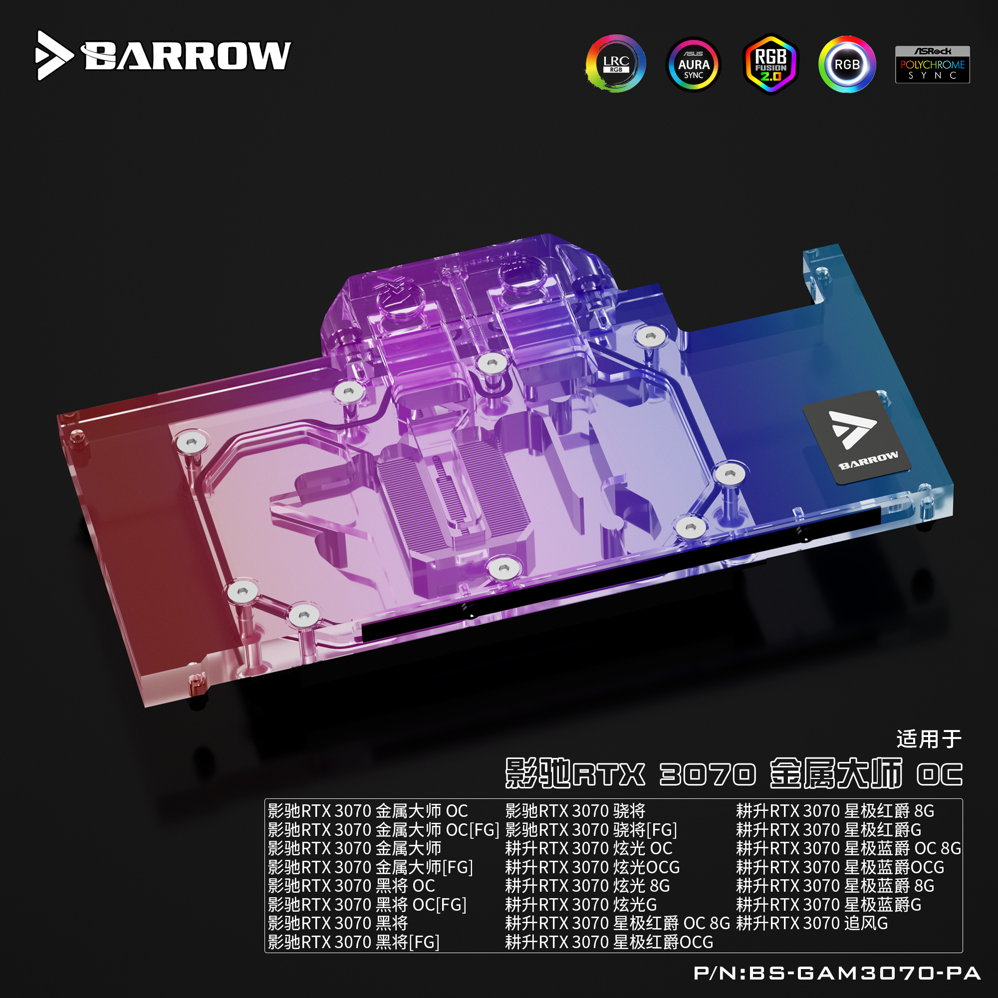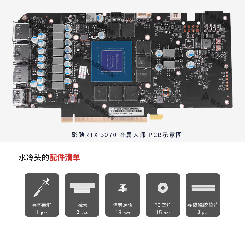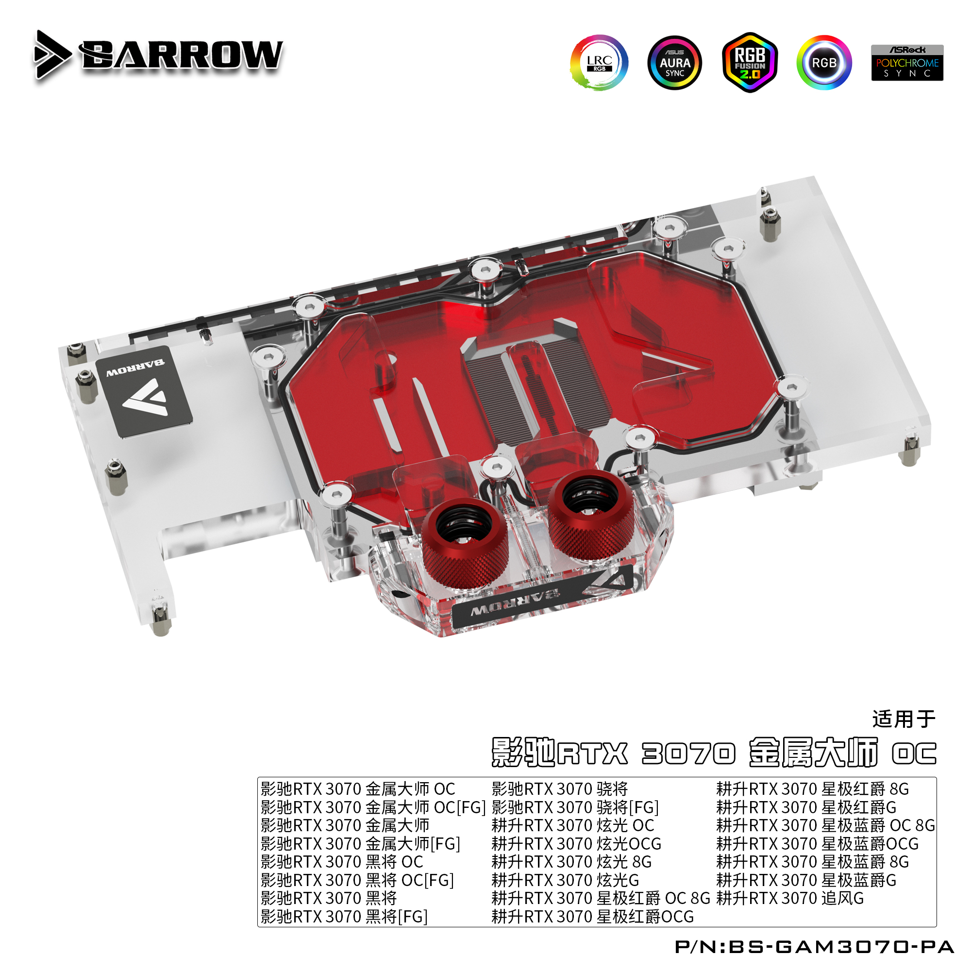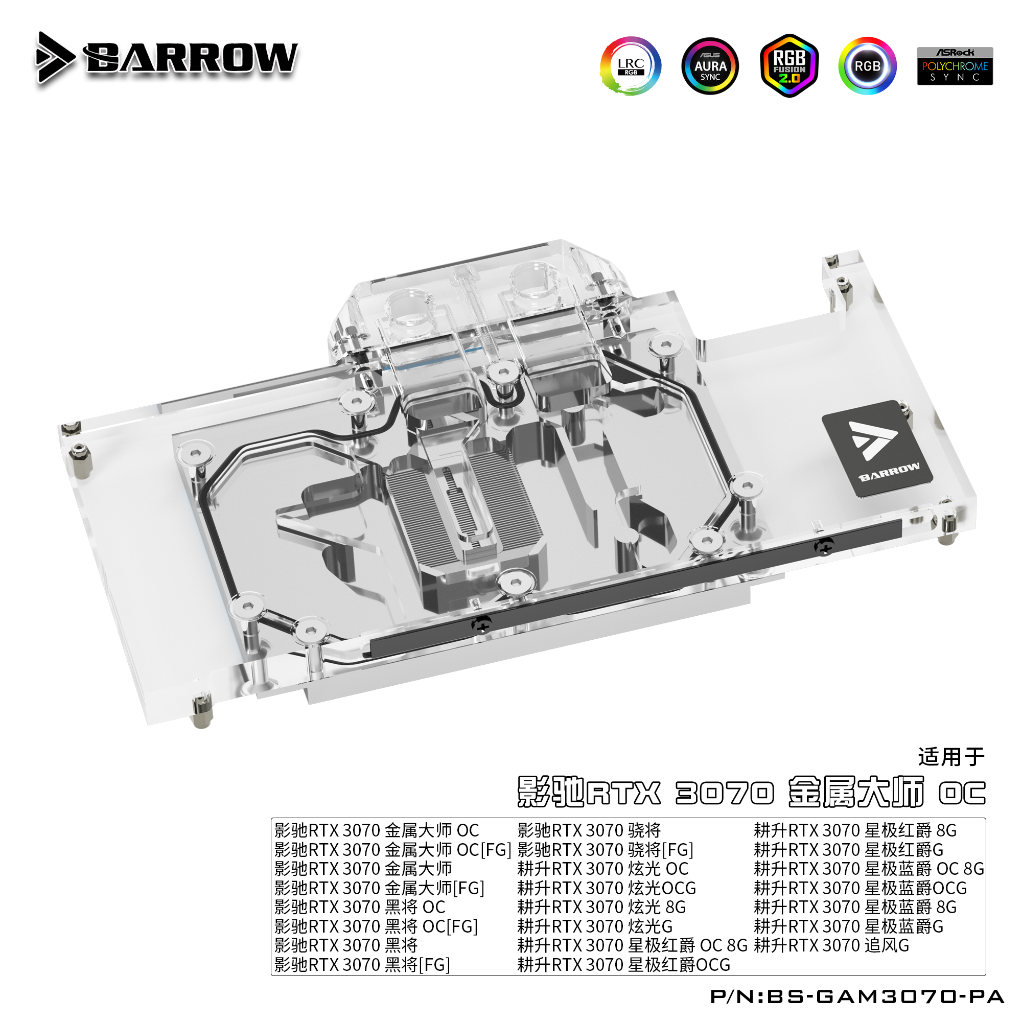 Barrow 影驰耕升3070金属大师 全覆盖显卡水冷头 BS-GAM3070-PA