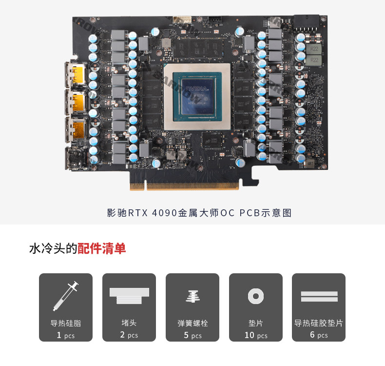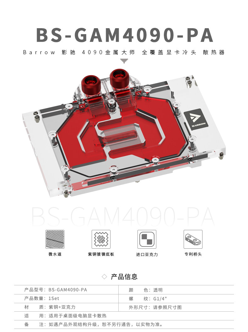 Barrow 影驰 4090金属大师 全覆盖显卡水冷头散热器BS-GAM4090-PA