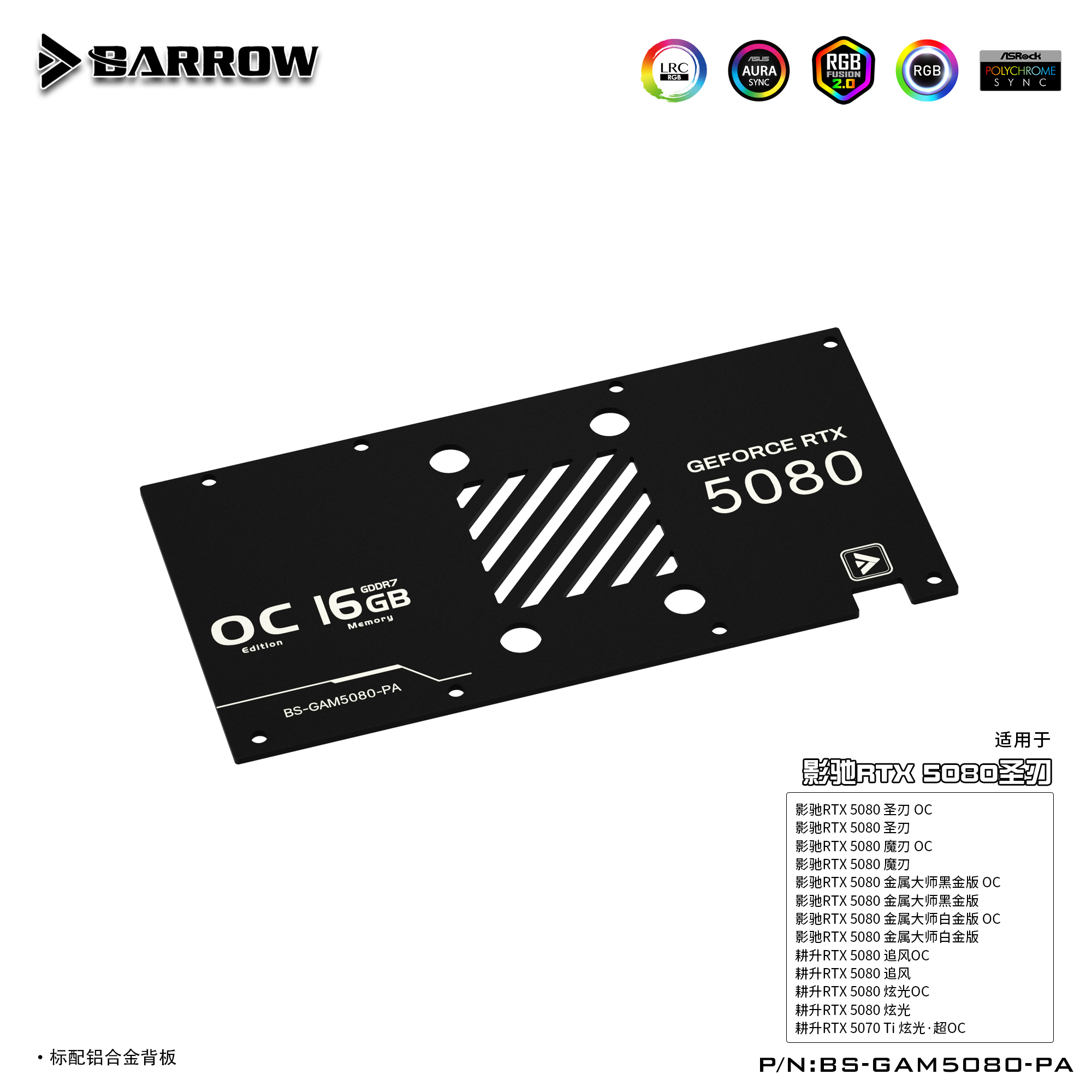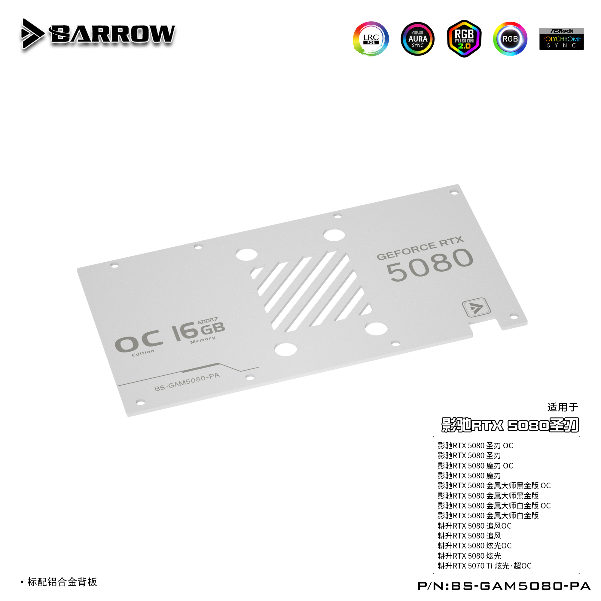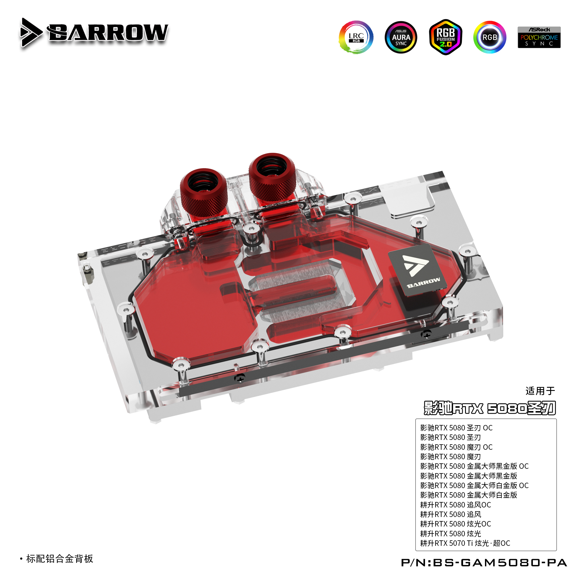 Barrow 影驰耕升 5080圣刃 全覆盖显卡水冷头散热器 BS-GAM5080-PA