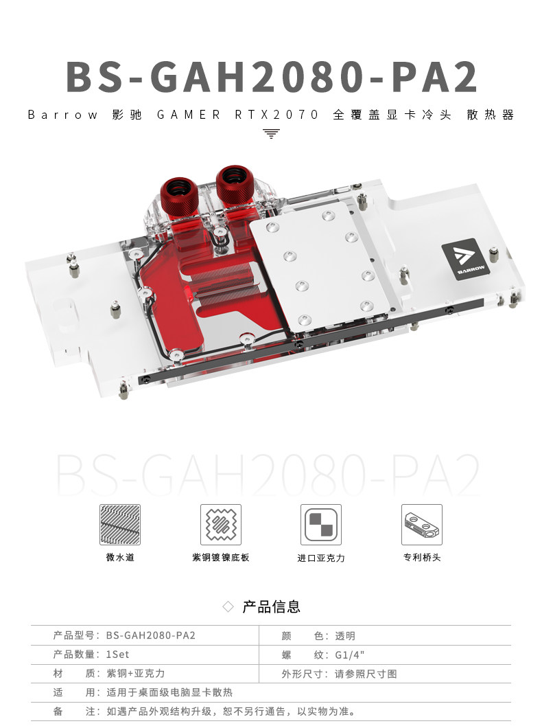 Barrow 影驰RTX2080/2070/2060全覆盖显卡冷头 BS-GAH2080-PA2