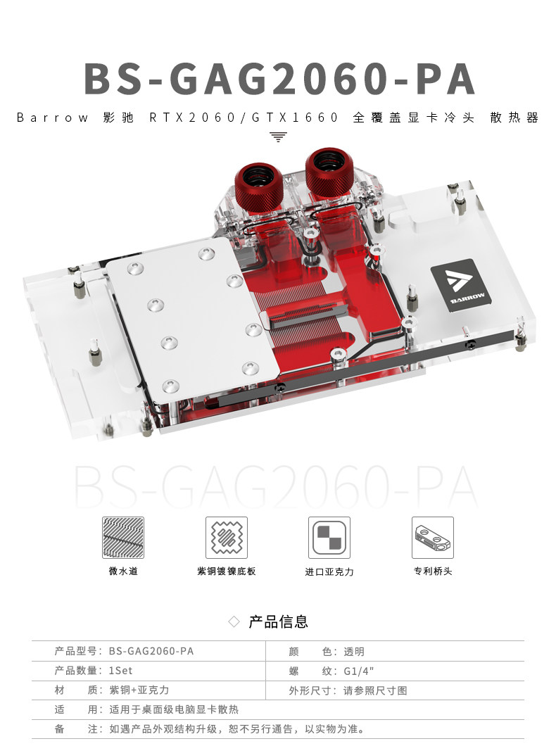 Barrow 影驰RTX2060/GTX1660 全覆盖显卡冷头 极光 BS-GAG2060-PA