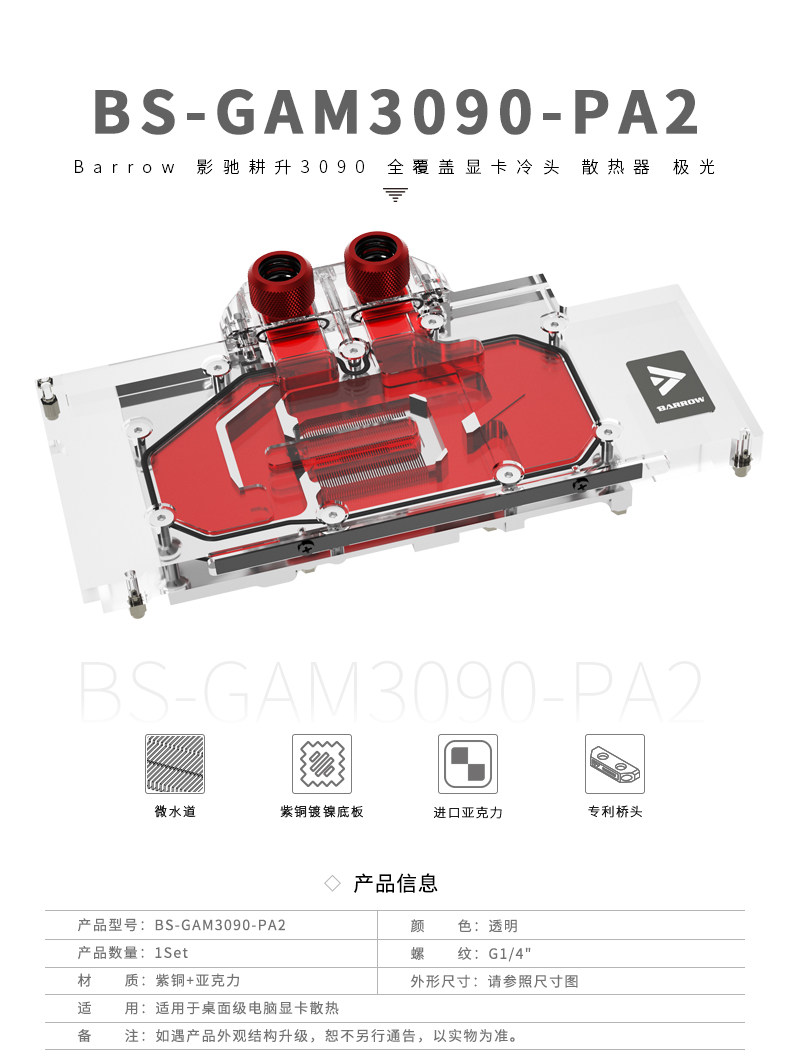Barrow 影驰耕升3090 全覆盖显卡冷头 散热器 极光 BS-GAM3090-PA2