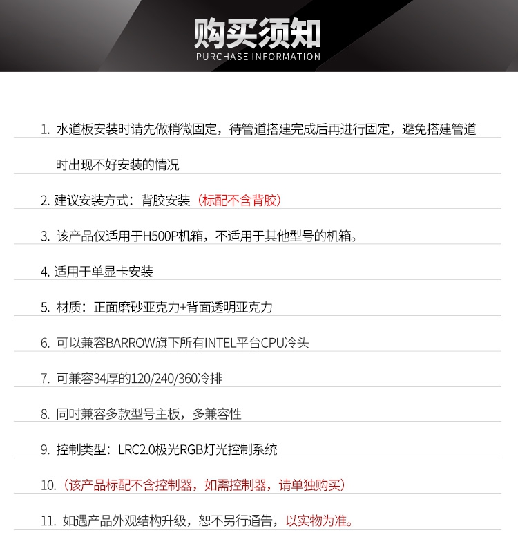 酷冷至尊H500P机箱水道板H500P-SDB V1版本推荐使用产品 :
