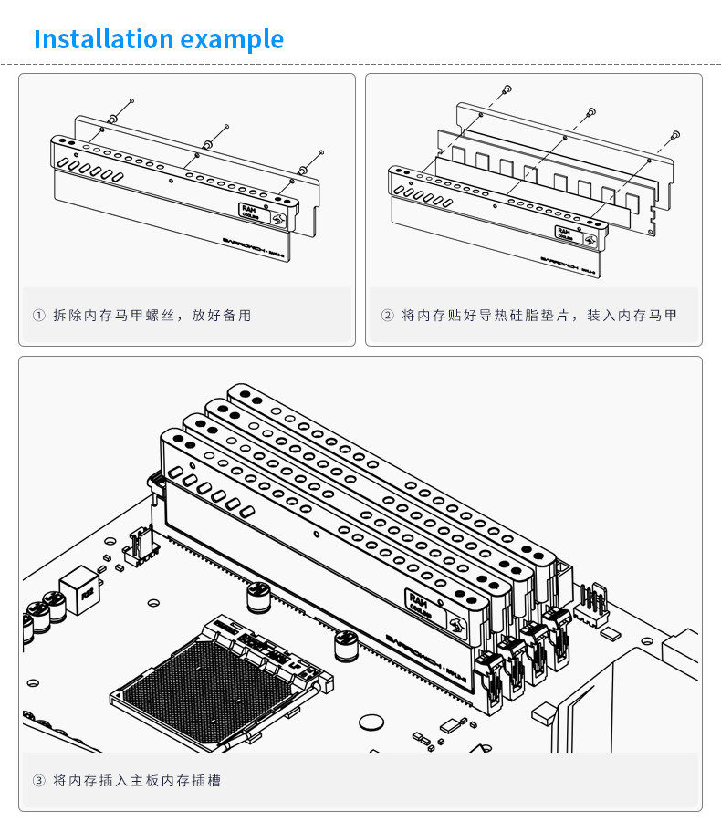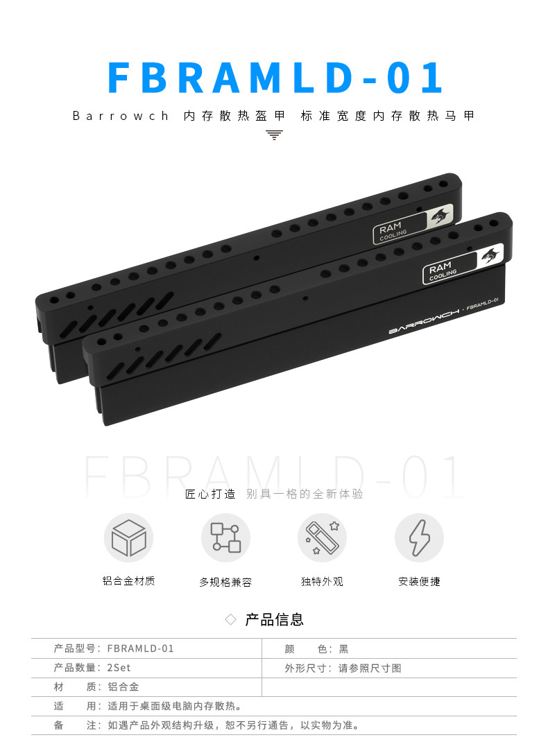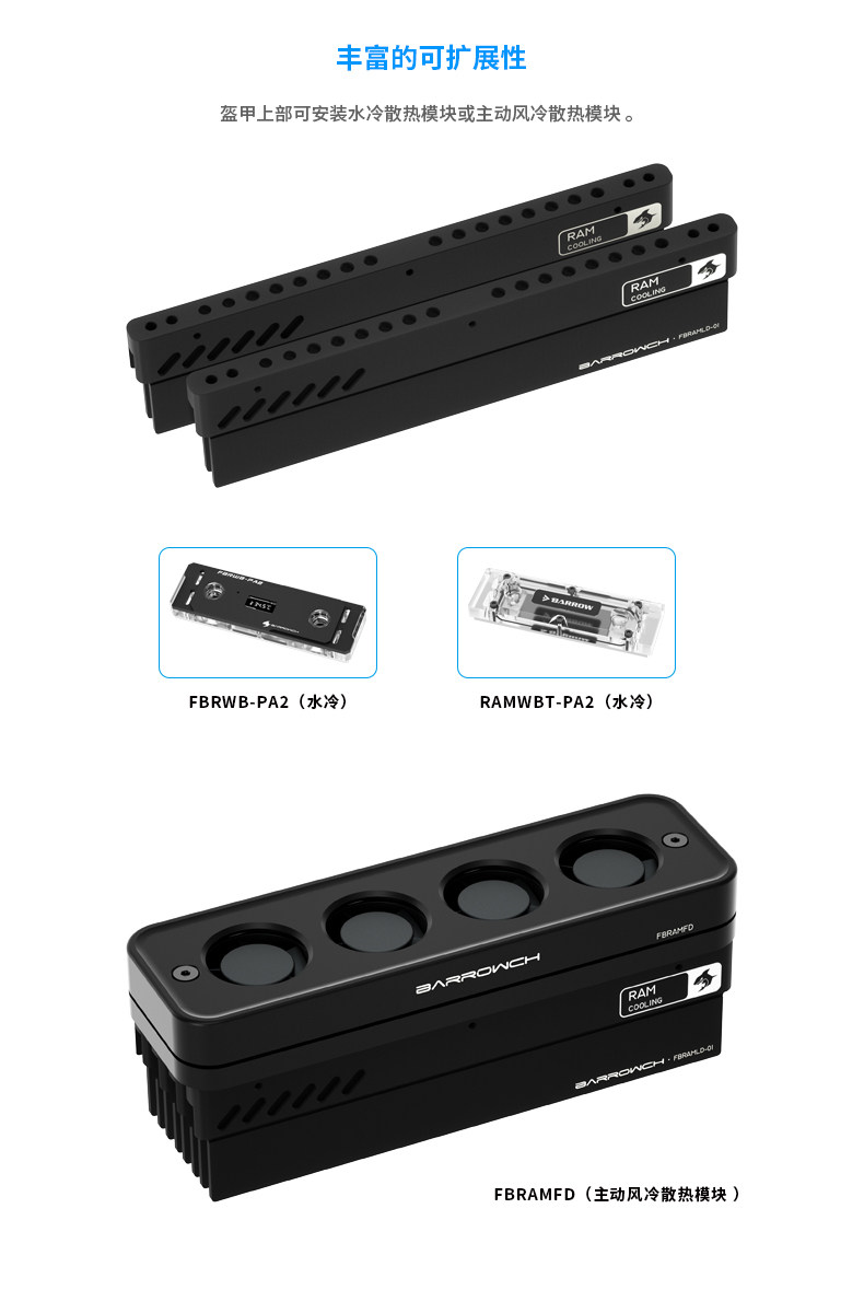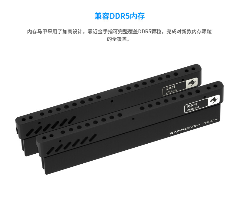 Barrowch DDR5内存条散热盔甲铝合金马甲风冷水冷改造 FBRAMLD-01