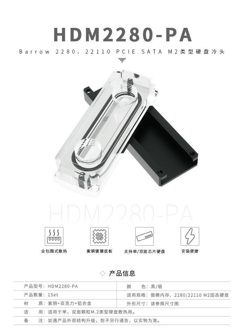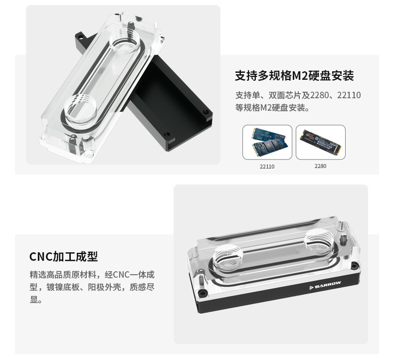 Barrow 2280、22110 PCIE SATA M.2 M2固态硬盘冷头 HDM2280-PA