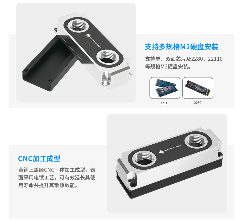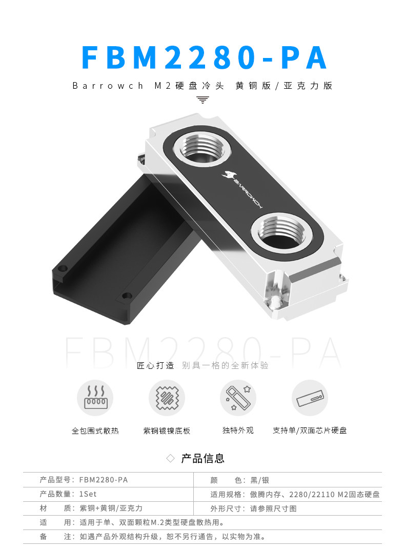 Barrowch 2280、22110PCIE SATA M.2 M2固态硬盘冷头 FBM2280-PA