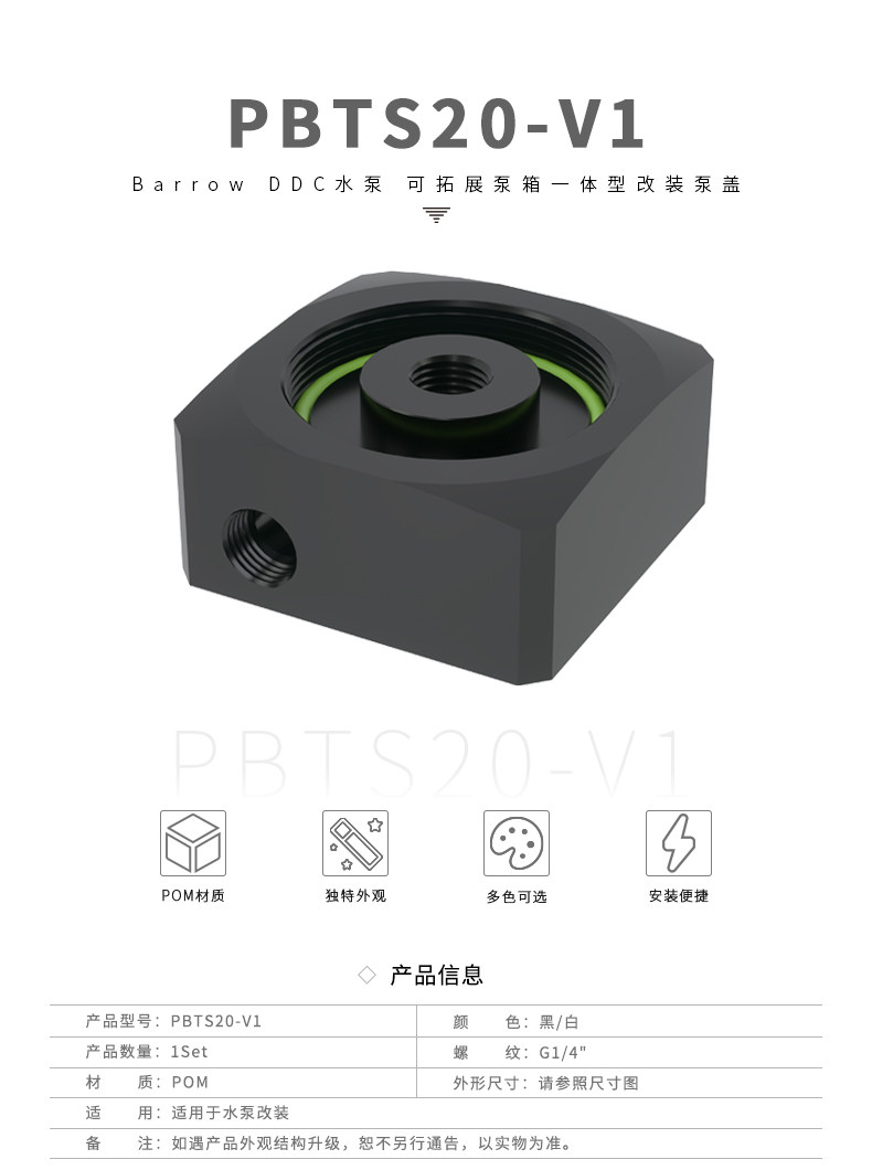 Barrow 黑/白2色 DDC水泵 可拓展泵箱一体型改装泵盖 PBTS20-V1