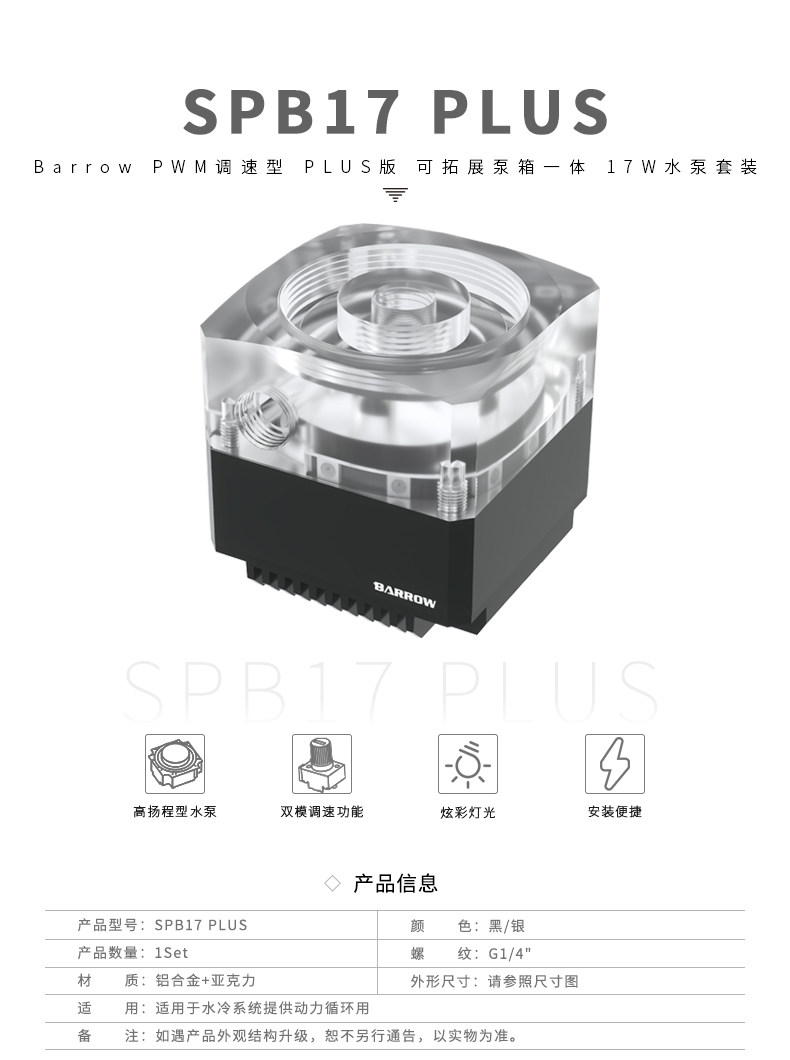 Barrow PLUS版 PWM调速型 可拓展泵箱一体17W水泵套装 SPB17 PLUS