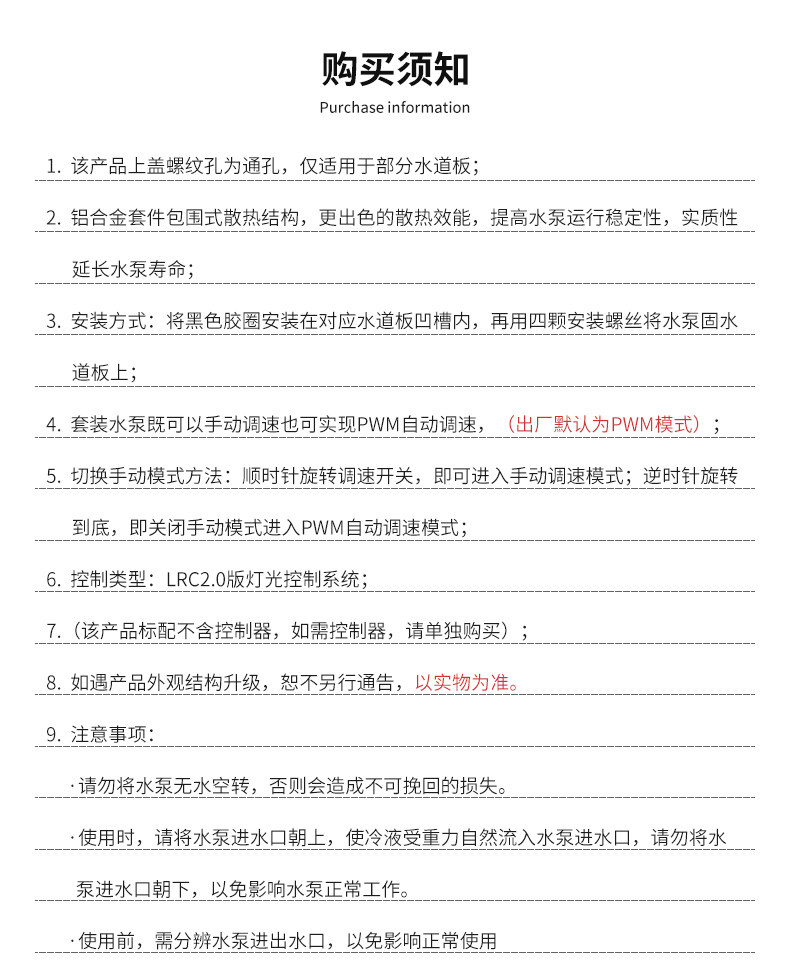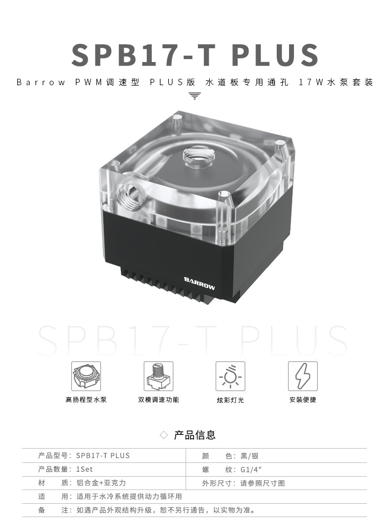 Barrow PLUS版PWM调速型水道板专用通孔17W水泵套装 SPB17-T PLUS