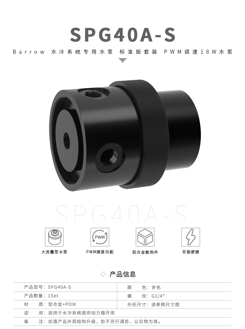Barrow 黑色 水冷系统专用水泵 PUMP PWM调速18W水泵 SPG40A-S