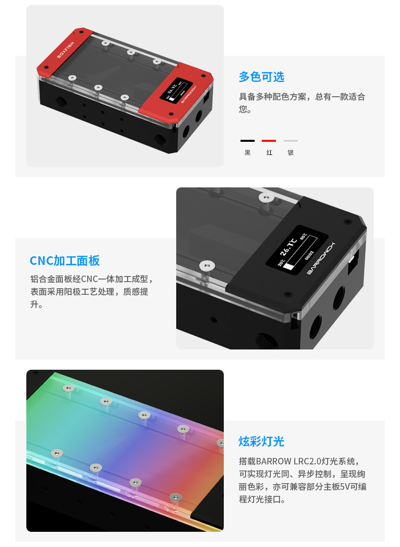 Barrowch boxfish系列 POM方形智慧数显水箱 水冷散热 FBRE1-200P
